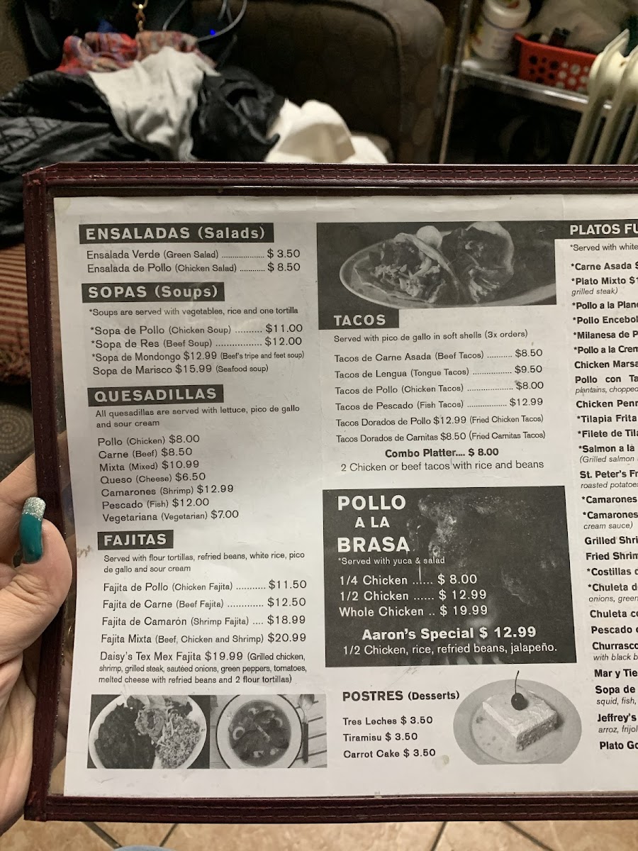 The breakfast offerings are a must-try, especially the Salvadorian Style Breakfast, combining eggs, beans, avocado, and tortillas that transport you to culinary bliss. Customers rave about the generously portioned fajitas and pupusas, highlighting the fresh ingredients and harmonious seasoning. Daisy's unique atmosphere, complemented by attentive service and décor, makes every visit feel like a special occasion. Come experience the vibrancy of Daisy's menu; your taste buds will thank you!